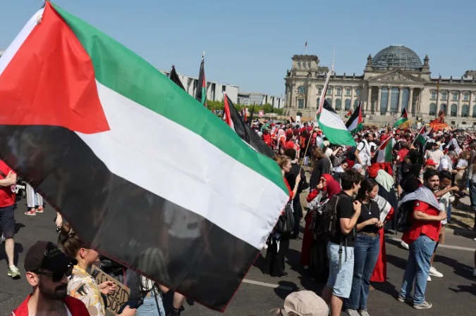 وفي برلين، طالب ناشطون ومتضامنون مع القضية الفلسطينية خلال وقفة احتجاجية بوقف حرب الإبادة الجماعية والهجمات الإسرائيلية على المدنيين في قطاع غزة.