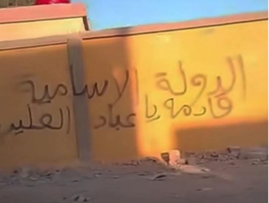 شهدت مدينة البوكمال في ريف دير الزور الشرقي اليوم ظهور عبارات تهديدية جديدة على جدار إحدى المدارس، خطّها مجهولون يُرجّح انتماؤهم إلى خلايا تنظيم "الدولة الإسلامية"، تضمنت نصوصاً مثل: "الدولة الإسلامية قادمة يا عباد الصليب". وتعدّ منطقة دير الزور، سواء في المناطق الخاضعة لسيطرة الحكومة السورية المؤقتة أو لقوات سوريا الديمقراطية، من أكثر المناطق نشاطاً للتنظيم، حيث يشنّ عمليات مفاجئة تستهدف العسكريين والمدنيين على حد سواء، بهدف بث الفوضى وزعزعة الأمن والاستقرار المحلي.