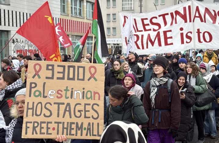 وحمل المتظاهرون لافتات كُتبت عليها عبارات مثل “الحرية لفلسطين” و“أوقفوا قتل الأطفال” و“لا للسلاح الألماني في حرب الإبادة”، في إشارة مباشرة إلى الدعم العسكري الذي تقدمه الحكومة الألمانية لإسرائيل، وهو ما أثار انتقادات واسعة في أوساط المحتجين.