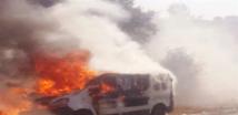 في دير القمر.. إحتراق سيارة "فان" يتسبب بقطع الطريق