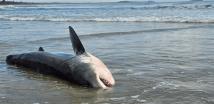 سمكة قرش عملاقة تنجرف إلى الشاطئ.. وهذا ما حل بها!