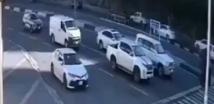 وأظهر مقطع فيديو لحظة اصطدام شاحنة كبيرة بسيارة أخرى ودفعها للأمام، بعدما كانت واقفة في انتظار فتح الإشارة الضوئية.