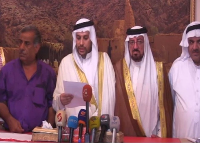 مجلس شيوخ ووجهاء العشائر والقبائل السورية أصدر بيانا في ختام الملتقى حذر فيه مجموعات قسد من الانخراط في المشروع الامريكي وتنفيذ اهدافه في حصار الشعب السوري ومنع الحل السياسي مطالبا بضرورة التوجه الى دمشق من اجل توحيد البنادق لتحرير عفرين وجرابلس وراس العين وادلب من براثن المحتلين .