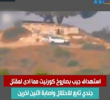 استهداف جيب بصاروخ كورنيت مما ادى لمقتل جندي تابع للاحتلال واصابة اثنين اخرين ...